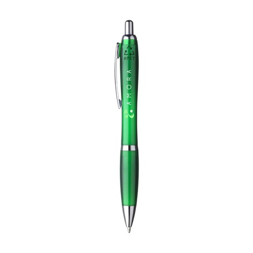 WoW! Blauschreibender Kugelschreiber mit transparentem Gehäuse hergestellt aus 100% recyceltem PET. Mit Hochglanzakzenten und Metallclip. Materialien: RPET