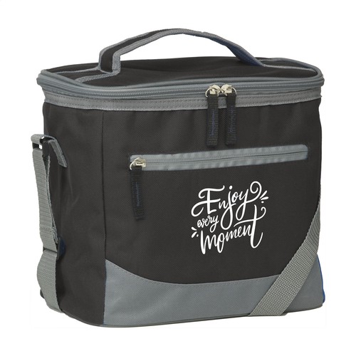 Kühltasche im praktischen Format. Aus 600D Polyester. Mit großem Kühlfach,Fronttasche mit Reissverschluss, Griff und anpassbarem Schultergurt. Passend für 12 Getränkedosen. Materialien: 600 D Polyester