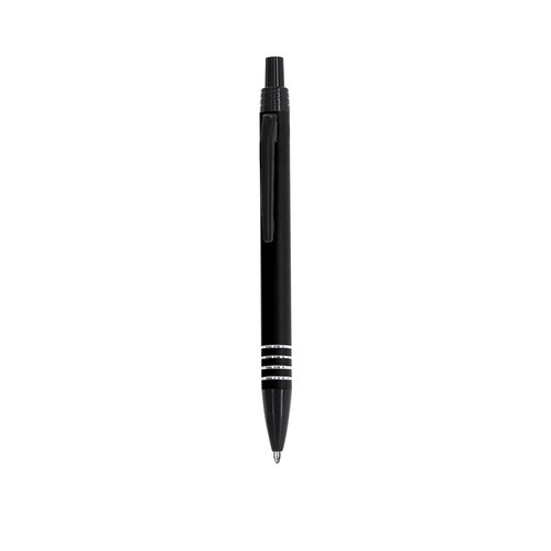 Kugelschreiber aus recyceltem Aluminium. Mit Druckmechanismus, Zubehör in schwarzer Farbe und silbernen Ringen. Jumbo-Patrone und blaue Tinte. Merkmal von recyceltem Aluminium auf der Oberseite.Recyceltes Aluminium ist ein Material mit fast unendlichen Recyclingmöglichkeiten, ohne seine ursprünglichen Eigenschaften zu verlieren und dabei weniger Energie in diesem Prozess zu verbrauchen.GRS-Zertifizierung (Global Recycled Standard), die den recycelten Ursprung des verwendeten Materials zur Herstellung des Produkts gewährleistet. Jumbo Mine Composition : Reclycling Aluminium.