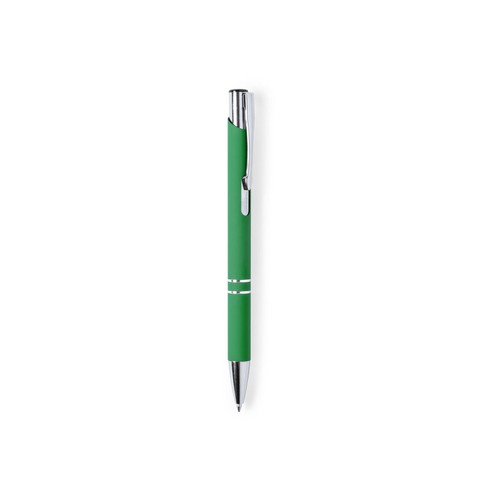 Kugelschreiber mit Push-Up-Mechanismus in elegantem zweifarbigem Design. Aluminiumgehäuse mit Gummiausrüstung, speziell für den Laserdruck entwickelt, dass das Logo in silberfarbenem Ton zeigt. Verchromte Spitze, Ringe und Metallclip. Erhältlich in einer breiten Palette von Farben, mit Jumbo-Patrone und blauer Tintenmine. Jumbo Mine Composition : Aluminium.