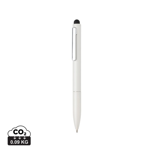 Der Kymi Kugelschreiber aus RCS-zertifiziert recyceltem Aluminium verbindet Stil und Funktionalität. Mit Drehmechanik und blauer Schreibfarbe. Schreibbreite 1mm, Schreiblänge bis zu 700 Meter. Mit Stylusspitze. Gesamter recycelter Inhalt auf Basis des Artikelgewichts: 27% Material : Recycelte Aluminiumlegierung,ABS – recycelt Zusätzlicher Schreiber-Sicherheitstest, Konformitätität der Cadmium-Richtlinie 91/338/EC, Konformität des US lead content, Konformität des PAHS-Inhalts in REAC & ZEK 01-4-08, Konformität der Richtlinie für den Inhalt von Phtalaten, Zertifikat des Recycled Claim Standard Packaging : Polybag und bulk All print codes : Pad Print Low,Laser Engraving 1 – Print technique default : Tampondruck – neben dem Clip – 60 x 5 mm – max color : 5 Total CO2 emissions : 0,09 . Für dieses Produkt hat der Hersteller oder die Marke alle oder einen Teil der produktsicherheitsbezogenen Informationen (GPSR) angegeben. Für weitere Informationen wenden Sie sich bitte an Ihren Ansprechpartner im Vertrieb.