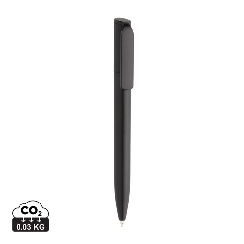 Dieser kompakte Mini-Kugelschreiber ist aus GRS-zertifiziert recyceltem ABS gefertigt und bietet sowohl Stil als auch Funktionalität. Mit einer Drehmechanik und blauer Dokumental-Tinte sorgt er für ein reibungsloses Schreibgefühl. Schreibbreite 1 mm, Schreiblänge bis zu 800 Meter. Gesamter recycelter Inhalt: 54% bezogen auf das Gesamtgewicht des Artikels. Material : ABS – recycelt Zusätzlicher Schreiber-Sicherheitstest, Konformitätität der Cadmium-Richtlinie 91/338/EC, Konformität des US lead content, Konformität des PAHS-Inhalts in REAC & ZEK 01-4-08, Konformität der Richtlinie für den Inhalt von Phtalaten, Frei von einzel- und mehrkettige, chlorinierten Paraffinen, Zertifikat des „Global Recycled Standard“ Packaging : Polybag und bulk All print codes : Pad Print Low – Print technique default : Tampondruck – neben dem Clip – 60 x 5 mm – max color : 5 Total CO2 emissions : 0,03 . Für dieses Produkt hat der Hersteller oder die Marke alle oder einen Teil der produktsicherheitsbezogenen Informationen (GPSR) angegeben. Für weitere Informationen wenden Sie sich bitte an Ihren Ansprechpartner im Vertrieb.