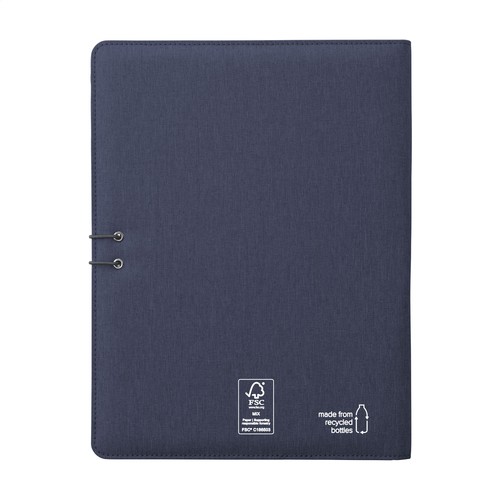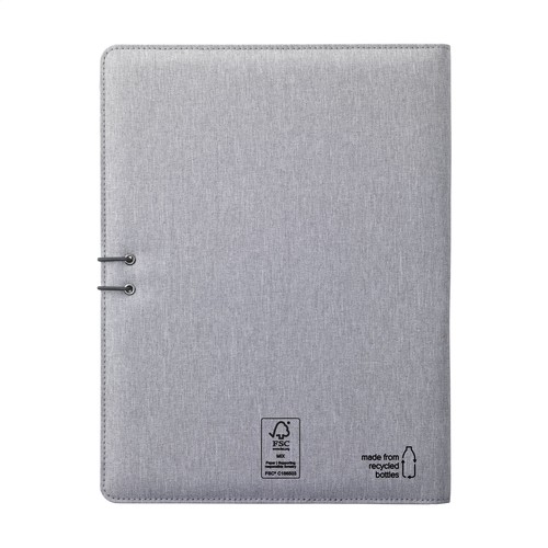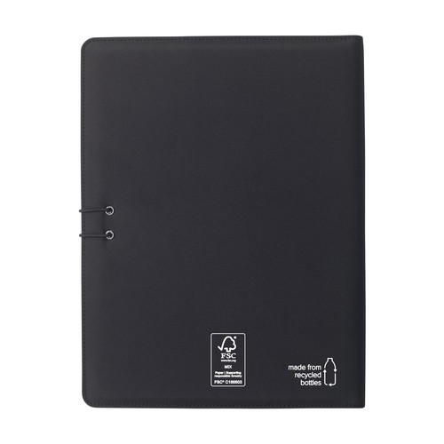 WoW! Moderne Schreibmappe/Dokumentenmappe aus RPET-Material im A4-Format. Ausgestattet mit mehreren Einsteckfächern, darunter ein separates Fach zur Aufbewahrung eines Mobiltelefons, sowie einer Stiftschlaufe. Inkl. Schreibblock mit 20 Blatt FSC zertifiziertem, weißem, liniertem Papier (70 g/m²). RCS-certified. Total recycled material: 6%. Materialien: RPET, Papier