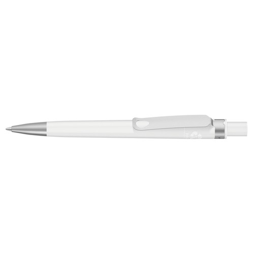 Druckkugelschreiber aus recyceltem PET-Material mit matt gedecktem Gehäuse. Metallclip und Metallspitze matt verchromt.