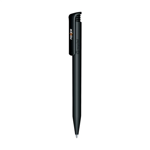 Blauschreibender Kugelschreiber der Marke Senator®. Hergestellt aus recyceltem Material. Dieser Kugelschreiber hat eine glatte, matte Oberfläche und einen großzügig bemessenen Clip/Druckknopf. Das Gehäuse ist neben dem Clip mit dem kleinen Symbol für „aus recyceltem Material“ bedruckt. Aufgrund des verwendeten Recyclingmaterials kann es zu leichten Unregelmäßigkeiten in der Oberfläche des Kugelschreibers kommen. Made in Germany. Materialien: recyceltes ABS