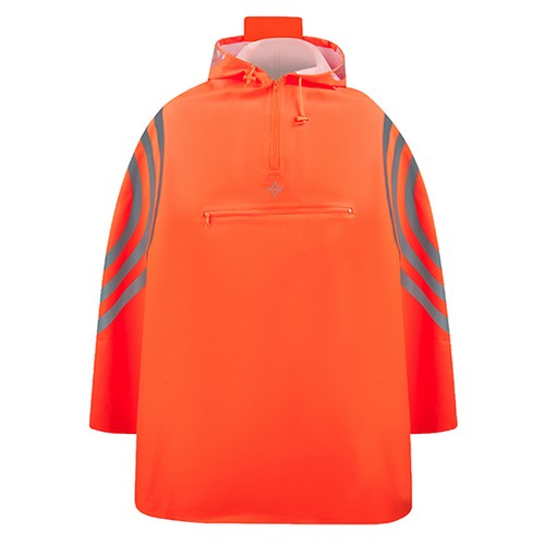 Wasserdichter 300D Oxford Stoff (Wassersäule 8000 mm) Kapuze lässt sich über Fahrradhelm tragen Kapuze mit Sichtfenster an den Seiten und mit einem Regenvisier an der Vorderseite Gummischlaufen für die Handgelenke Brusttasche mit Reißverschluss bietet Platz für das Smartphone beim Fahren; Poncho lässt sich anschließend darin verstauen Zertifiziert nach EN343 Mit modernem Reflektordesign Mit Schlaufe zum Aufhängen und Trocknen Ausgestattet mit EAN Barcode Zusammensetzung: 100% Polyester Eigenschaft: Hi-Vis / Wasserdicht