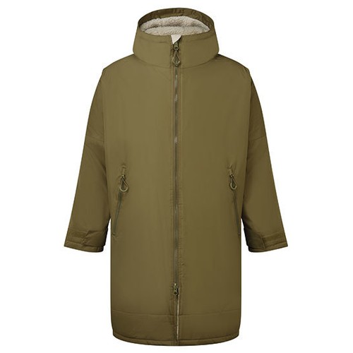 Unisex Oversized Durchgehender Zwei-Wege-Reißverschluss aus Kunststoff mit leicht zu bedienenden Schiebern Kinnschutz Oversized-Passform Seitliche Belüftungsöffnungen Verstellbare Ärmelbündchen mit Klettverschluss Seitliche Reißverschlusstaschen Innentasche mit Reißverschluss auf der linken Seite Aufgesetzte Innentasche auf der rechten Seite 3-teilige Kapuze Schlaufe in der Mitte der Rückseite der Jacke zum Aufhängen des Bademantels Verlängerter Saum hinten Zugang zum Stickbereich auf der Rückseite, Brustbereich auch hier zugänglich Wasserdichte, versiegelte Nähte Innenseite aus Sherpa-Fleece Transporttasche mit doppeltem Kordelzug Zusammensetzung: 100% Polyester Grammatur: 208 g/m² Pflegehinweis: 40 °C waschbar / Bügeln erlaubt Passform: Oversize Labels, Zertifizierungen und Normen: Dieses Produkt verfügt über eine oder mehrere anwendbare Zertifizierungen, Labels oder Normen. Für weitere Informationen wenden Sie sich bitte an Ihren Ansprechpartner im Vertrieb.