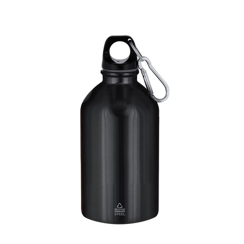 Trommel mit 500 ml Kapazität. Hergestellt aus recyceltem Edelstahl mit metallischer Oberfläche. Schwarzer Schraubverschlussdeckel, um eine optimale Abdichtung zu gewährleisten. Beinhaltet einen Metallkarabiner, der den Transport erleichtert. Mit recyceltem Edelstahl-Abzeichen. 500 ml Composition : Recycling Rostfreier Stahl.