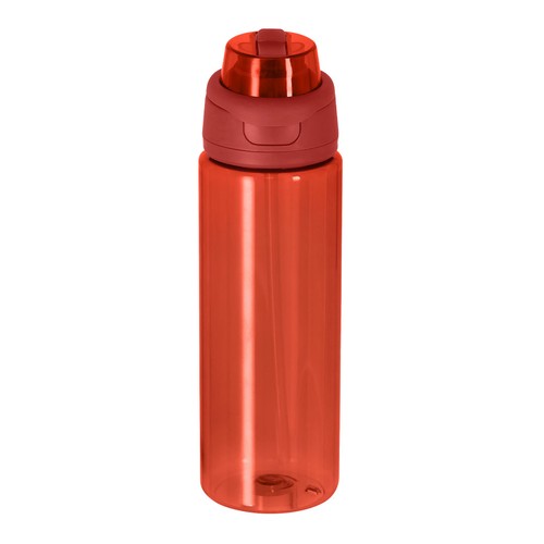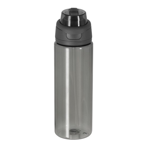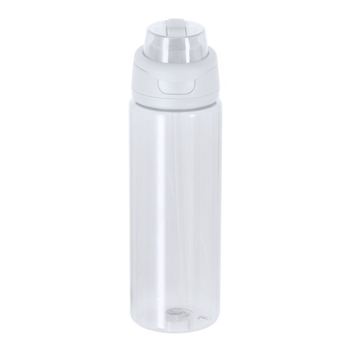 Flasche mit 750 ml Fassung, gefertigt aus widerstandsfähigem RPET und mit einer durchsichtigen Oberfläche. Mit doppeltem Trinksystem, Strohhalm und Trinkloch. Schiebeverschlussdeckel und Klappgriff. BPA-frei. 750 ml Composition : RPET.