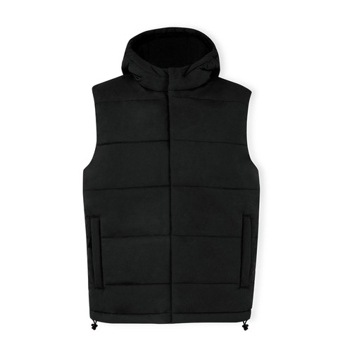 Kapuzenweste aus warmem und weichem Material (100% Polyester). Aus leichtem, wind- und wasserabweisendem Material. Elegante horizontale Konstruktion und gestepptes Design, mit integrierter fester Kapuze. Doppelter Frontreißverschluss und Haken- und Ösenverschluss. Seitentaschen mit passenden Zippern und verstellbarem Kordelzug am Saum. Erhältlich in den Größen XS, S, M, L, XL, XXL. Beständig Gegen Wind und Wasser Composition : 100% Polyester.