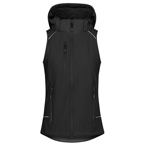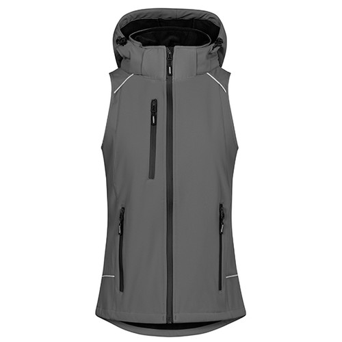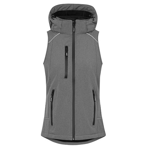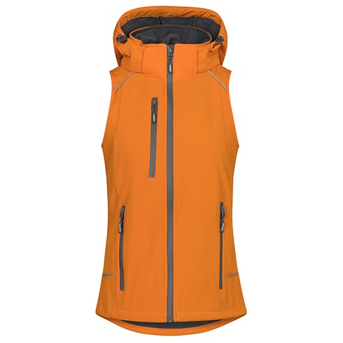 Weste Abnehmbare und volumenregulierbare Kapuze Wasserdichte Reißverschlüsse Kinnschutz Napoleontasche Tunnelzug am Saum mit Kordelstopper innen Verlängertes Rückenteil mit abgerundetem Saum 2 Seitentaschen mit Reißverschluss Eingenähter Schlüsselanhänger in Seitentasche Reflektierende Paspeln und Reißverschlussanhänger Teilungsnähte Neutrales Grössenetikett Atmungsaktiv, wasserdicht 8.000 mm, winddicht Softshell-Bonded-Fleece bi-elastisch Zusammensetzung : Außen: 95% Polyester / 5% Elasthan, Innen: 100% Polyester Zertifizierung : Faire Arbeitsbedingungen / Oeko-Tex 100